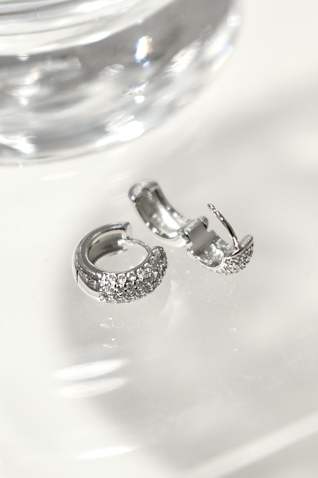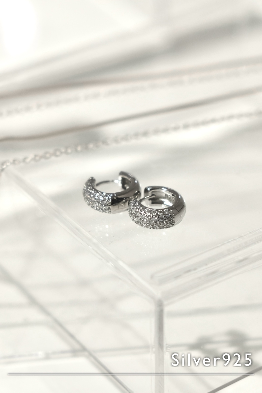 SILVER925 5.5mm幅 ハーフジルコニアラウンドフープピアス 15mm径 /シルバー [P3417-S]