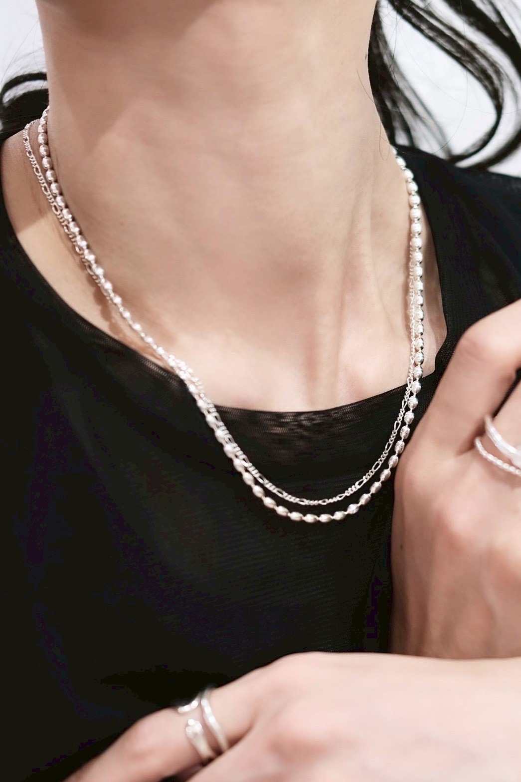 質量感のある雰囲気が魅力のオーバルボールチェーンネックレス。