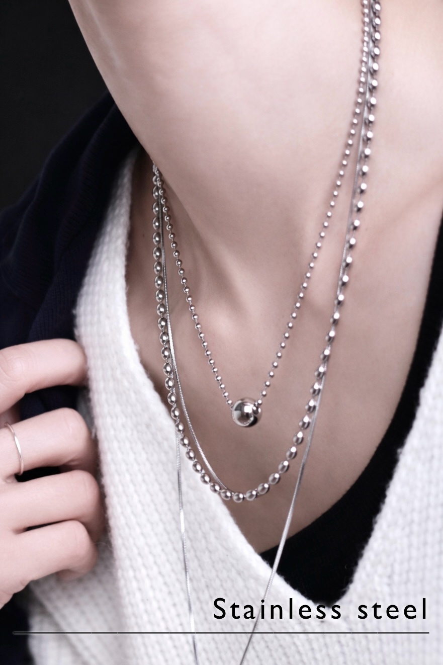 ステンレス 3.0mm幅 オーバルボールチェーンネックレス [NC513]