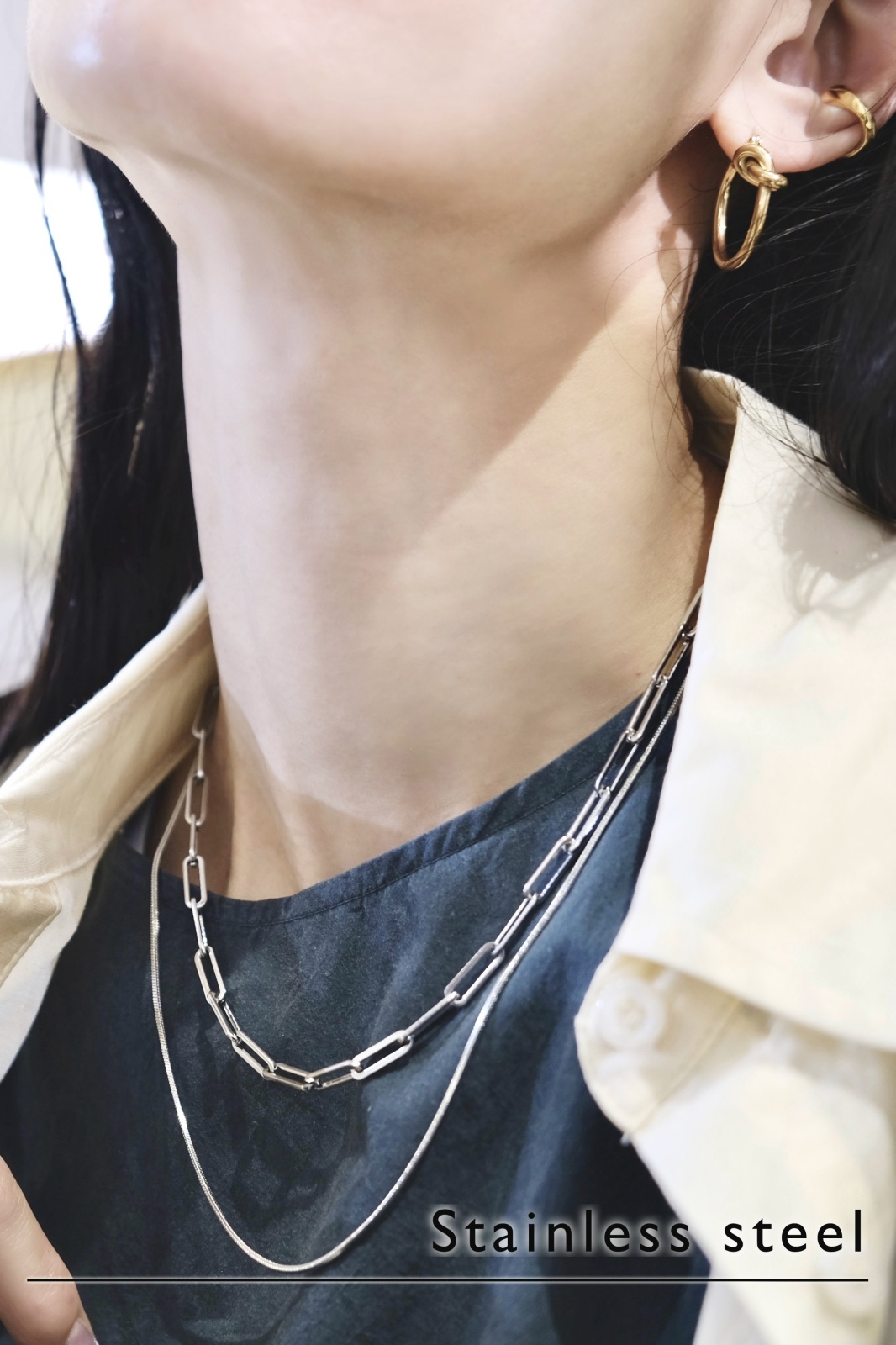 ステンレス コネクティットアズキチェーンネックレス [NC550]