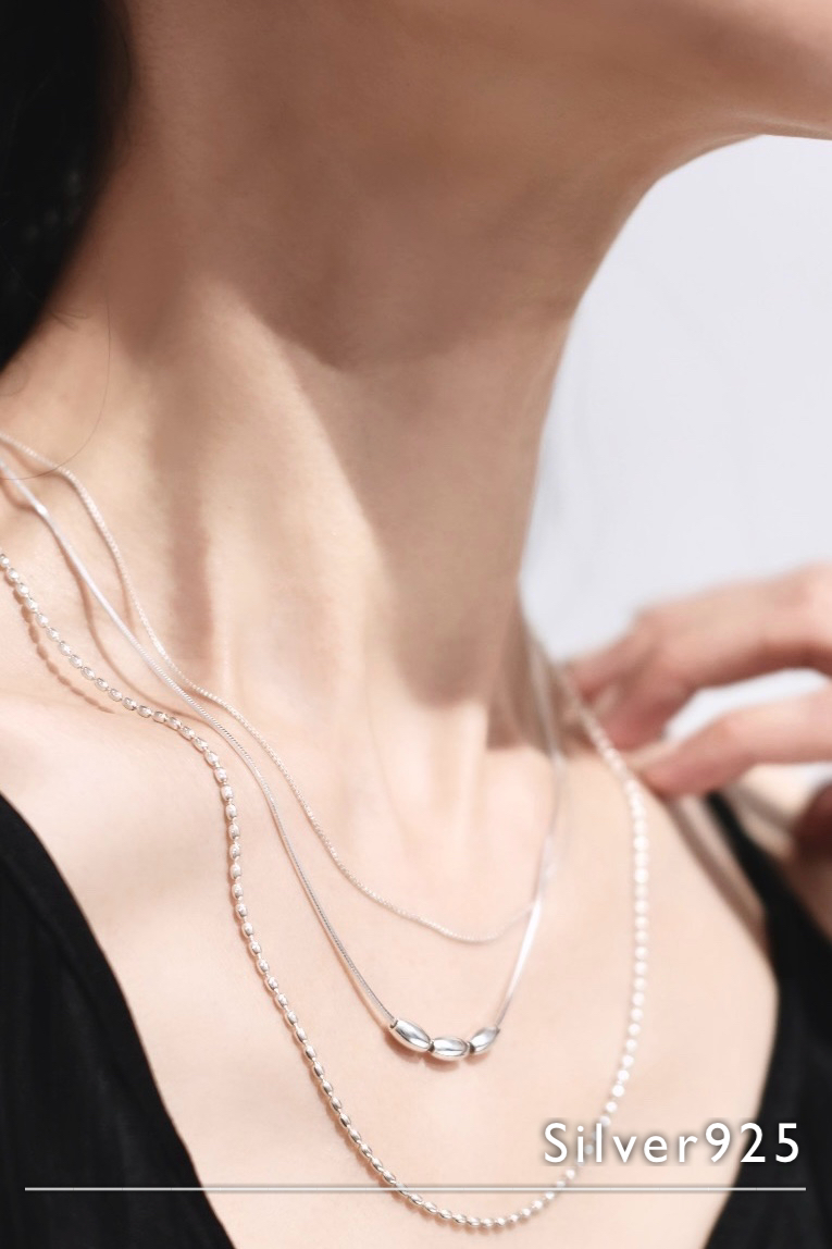 SILVER925 3オーバルビーズスネークチェーンネックレス [NC361-S]