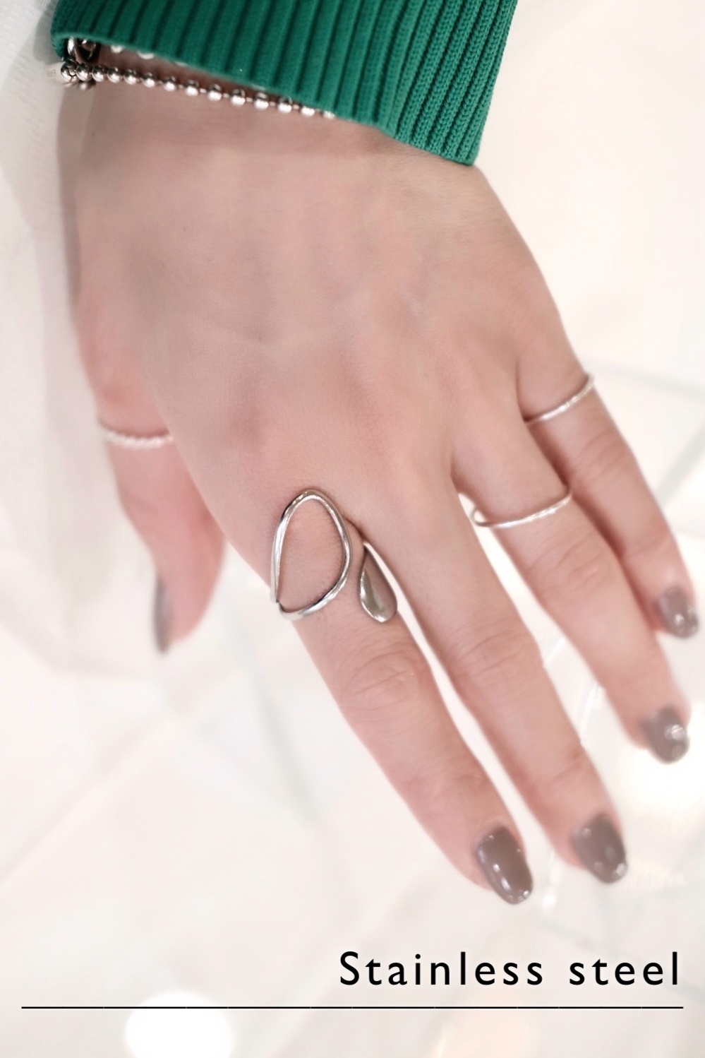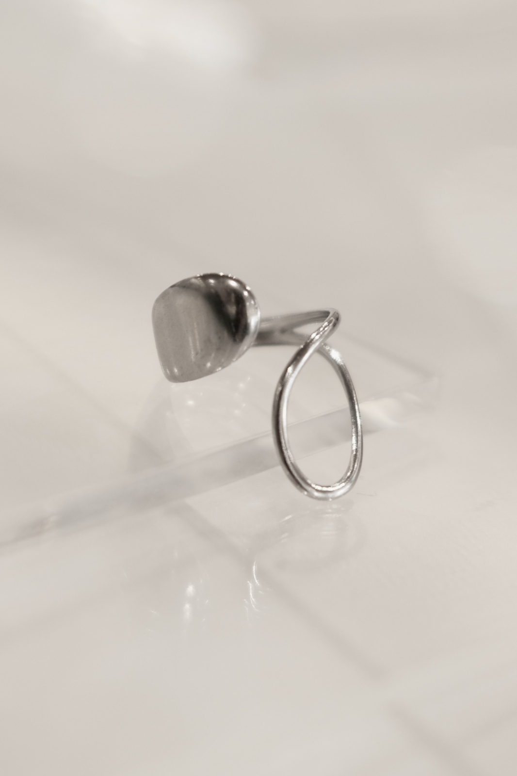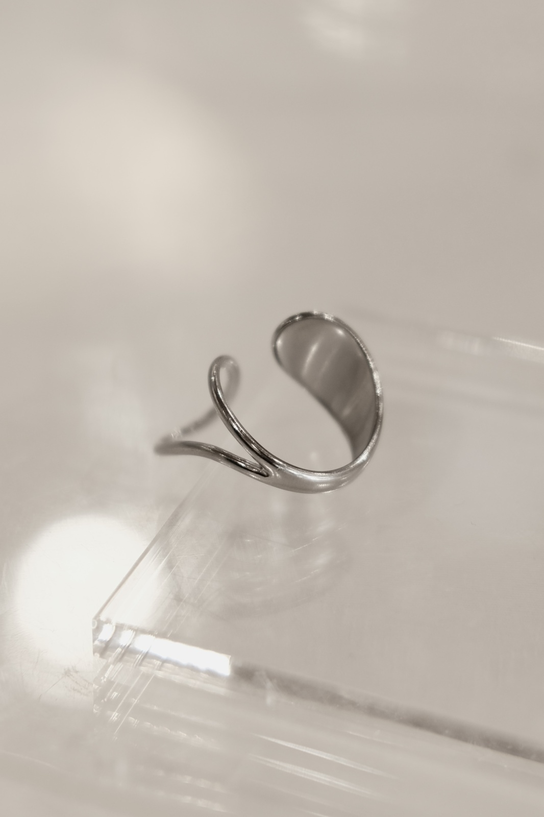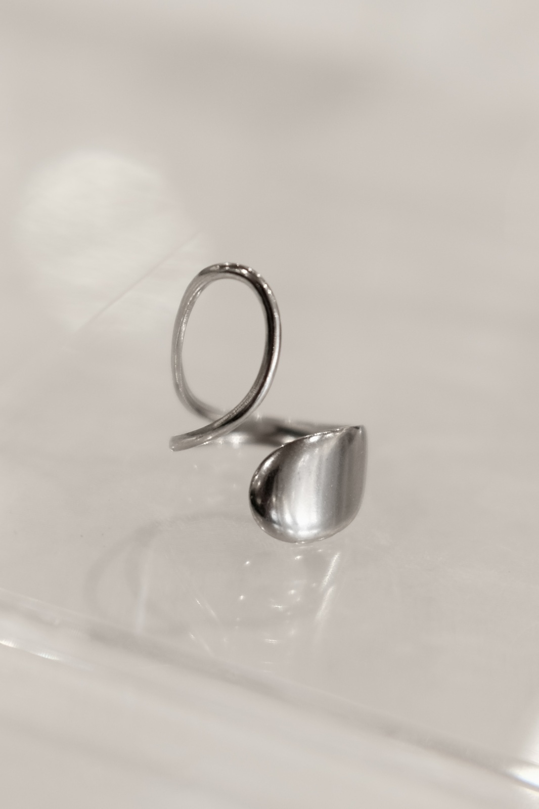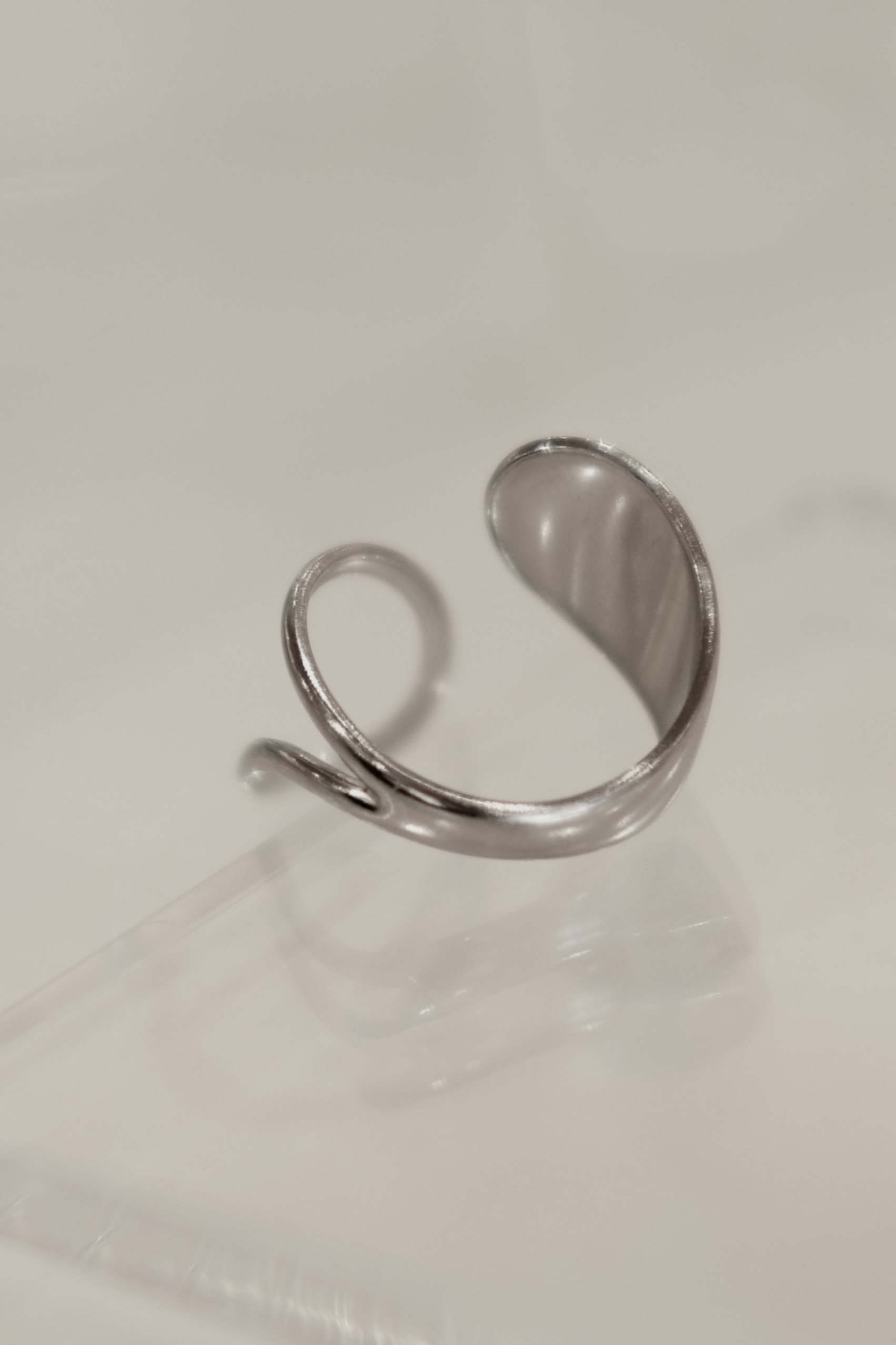 ステンレス ビッグドロップ&ホローフロントオープンリング /シルバー [R1482-S]