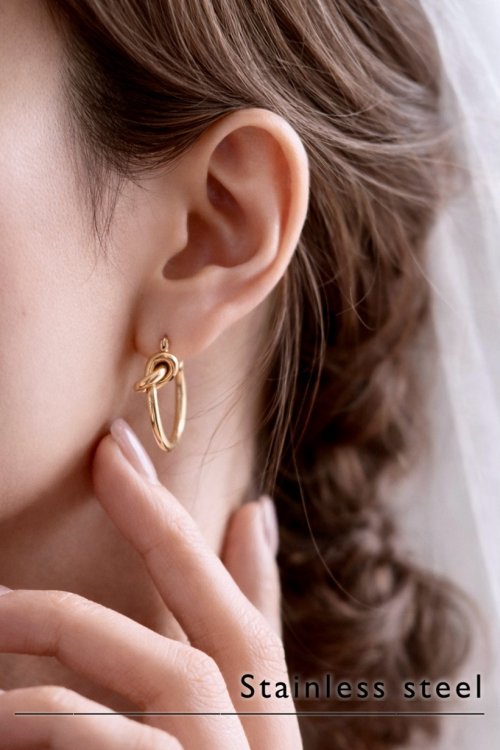 立体的なアズキチェーンデザインが人気のフープピアス。