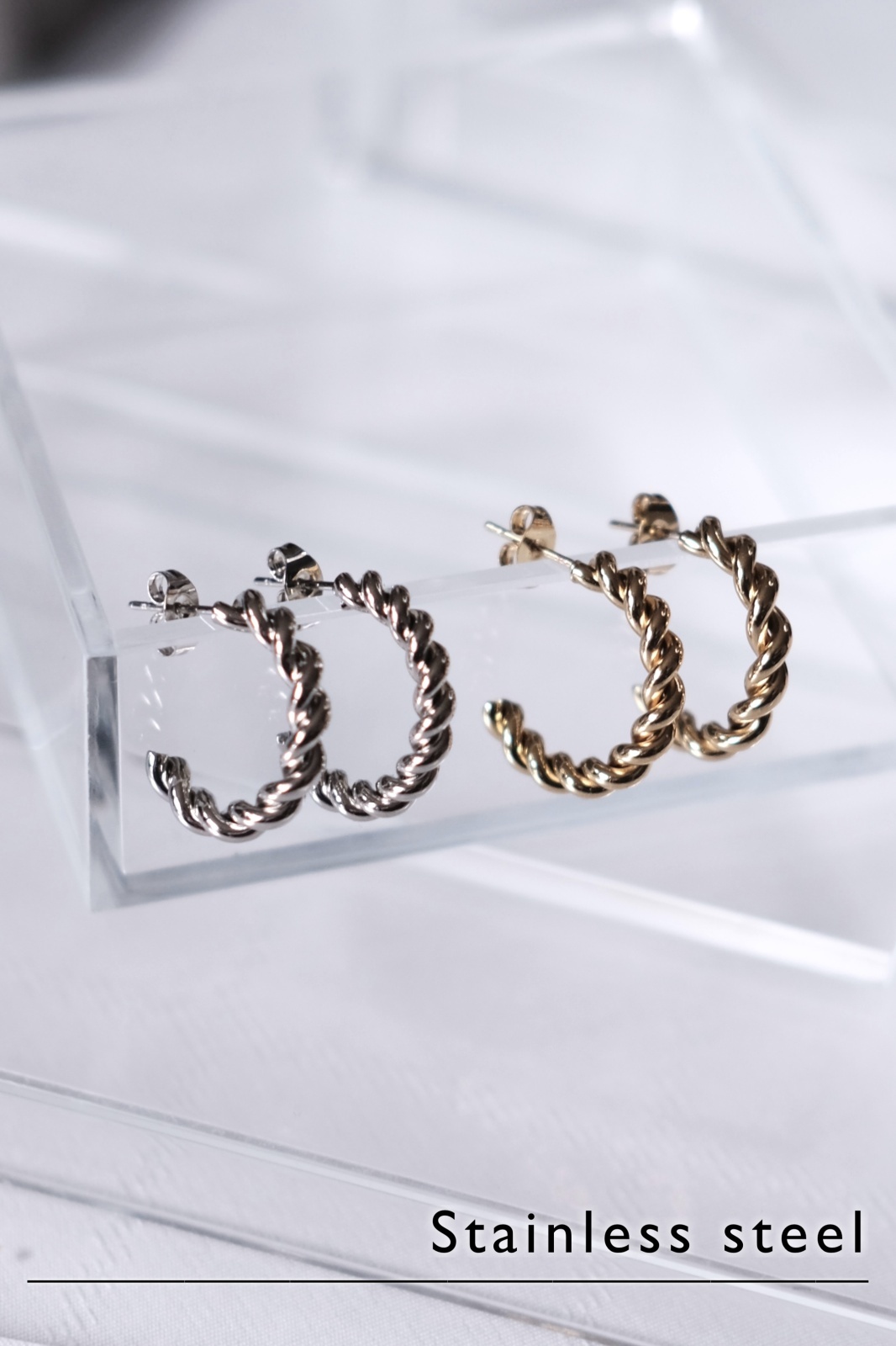 - > ステンレス ツイストラインC型フープピアス