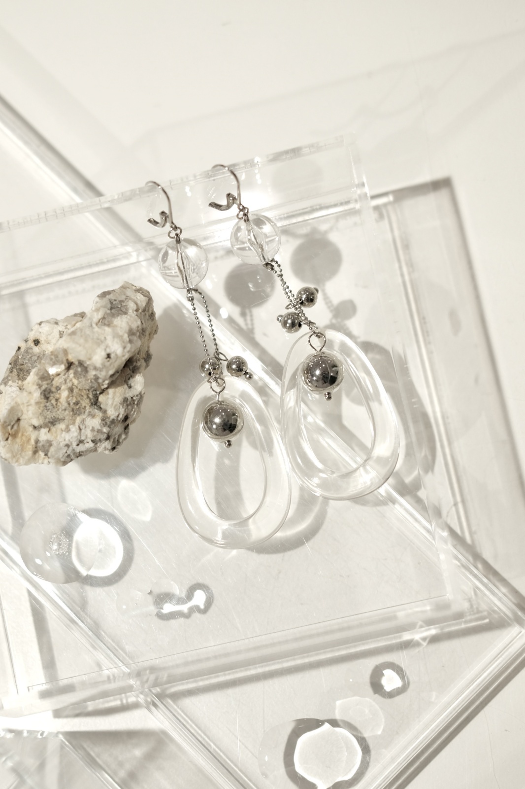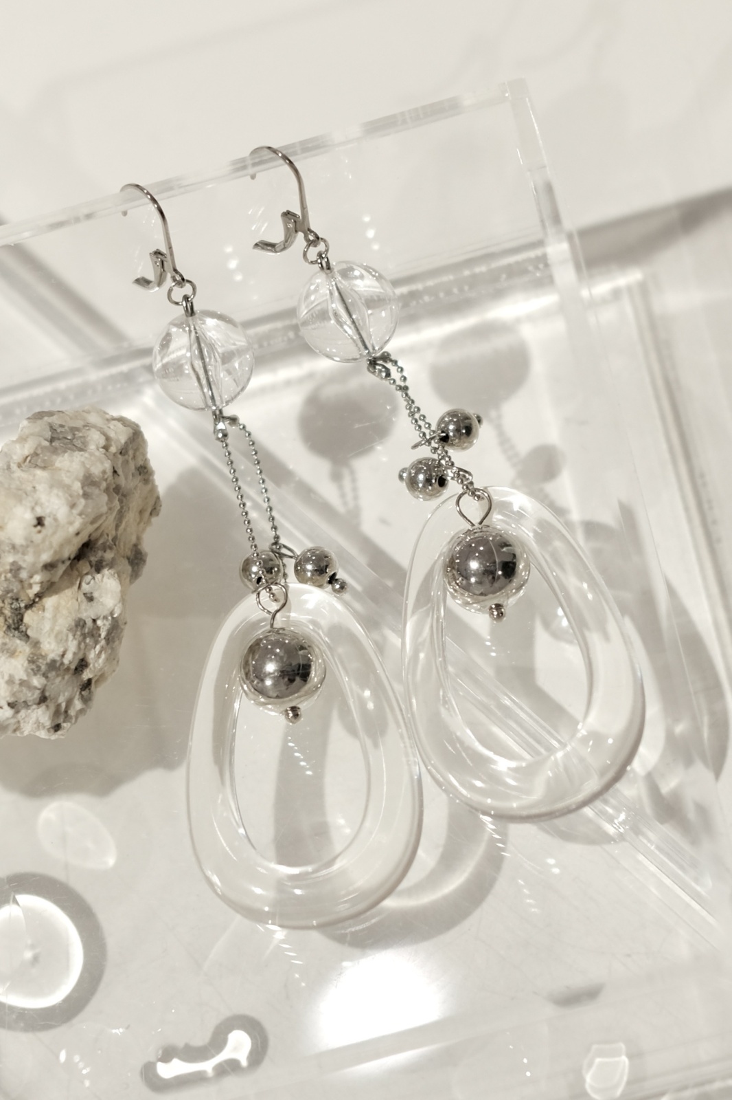 ぷっくりと立体フォルムの独創的なオーバルクリアスウィングピアス(イヤリング)です。