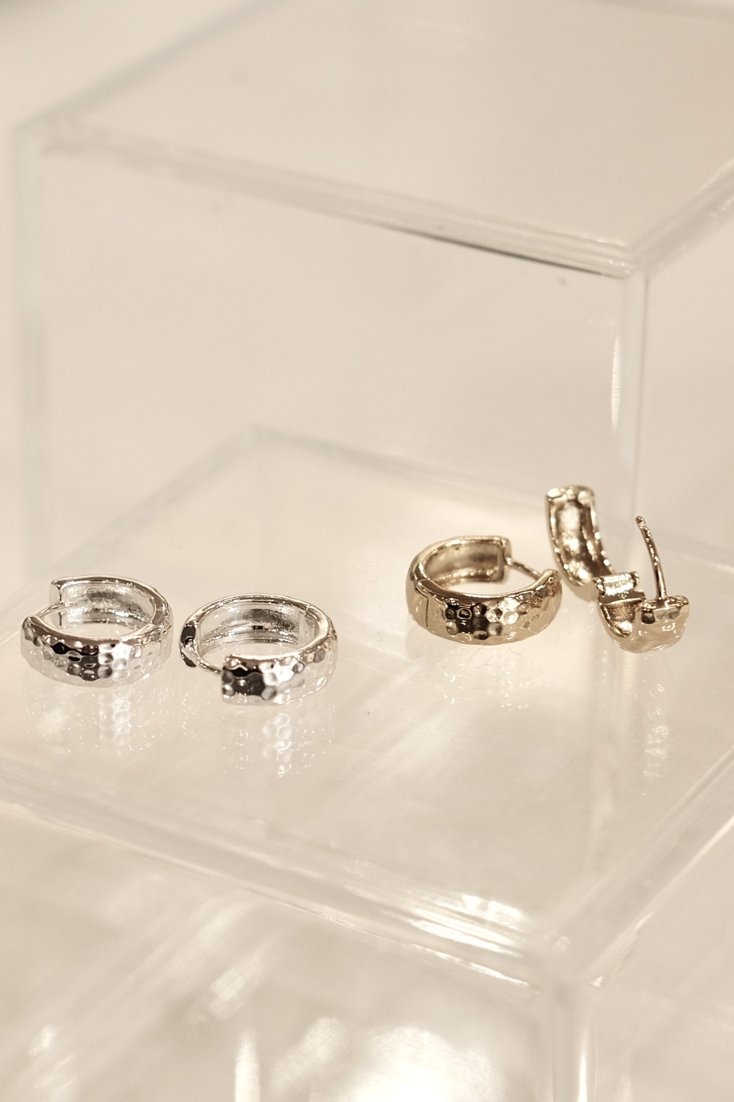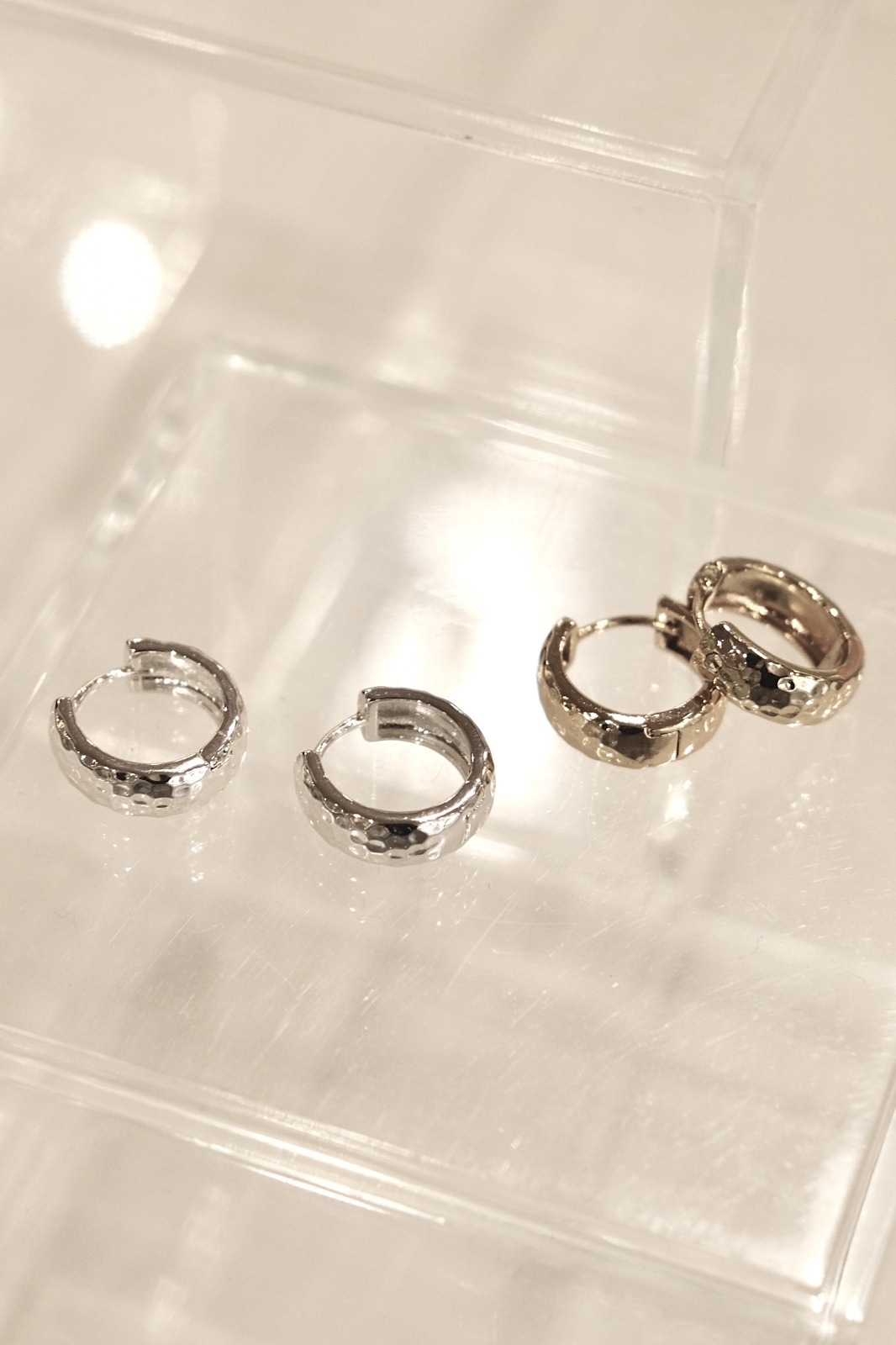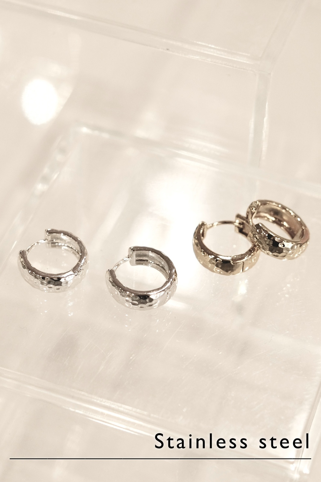 ステンレス 5mm幅 デントサーフェイスフープピアス 15mm径 [P3407]