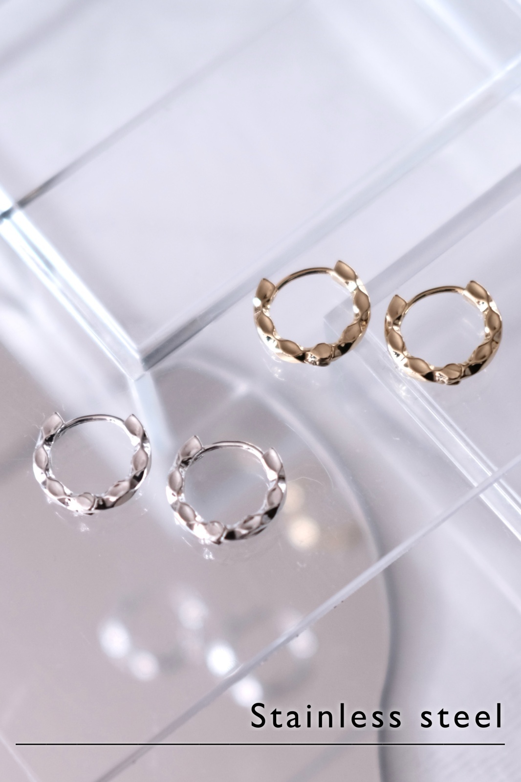 人気のステンレス製キャッチレスフープピアス。