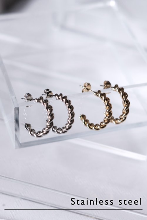 - > ステンレス 9mm幅 スクエアキューブフープピアス 8mm径