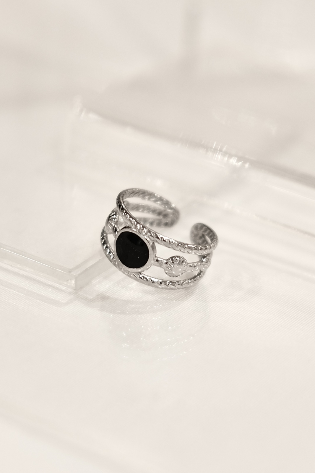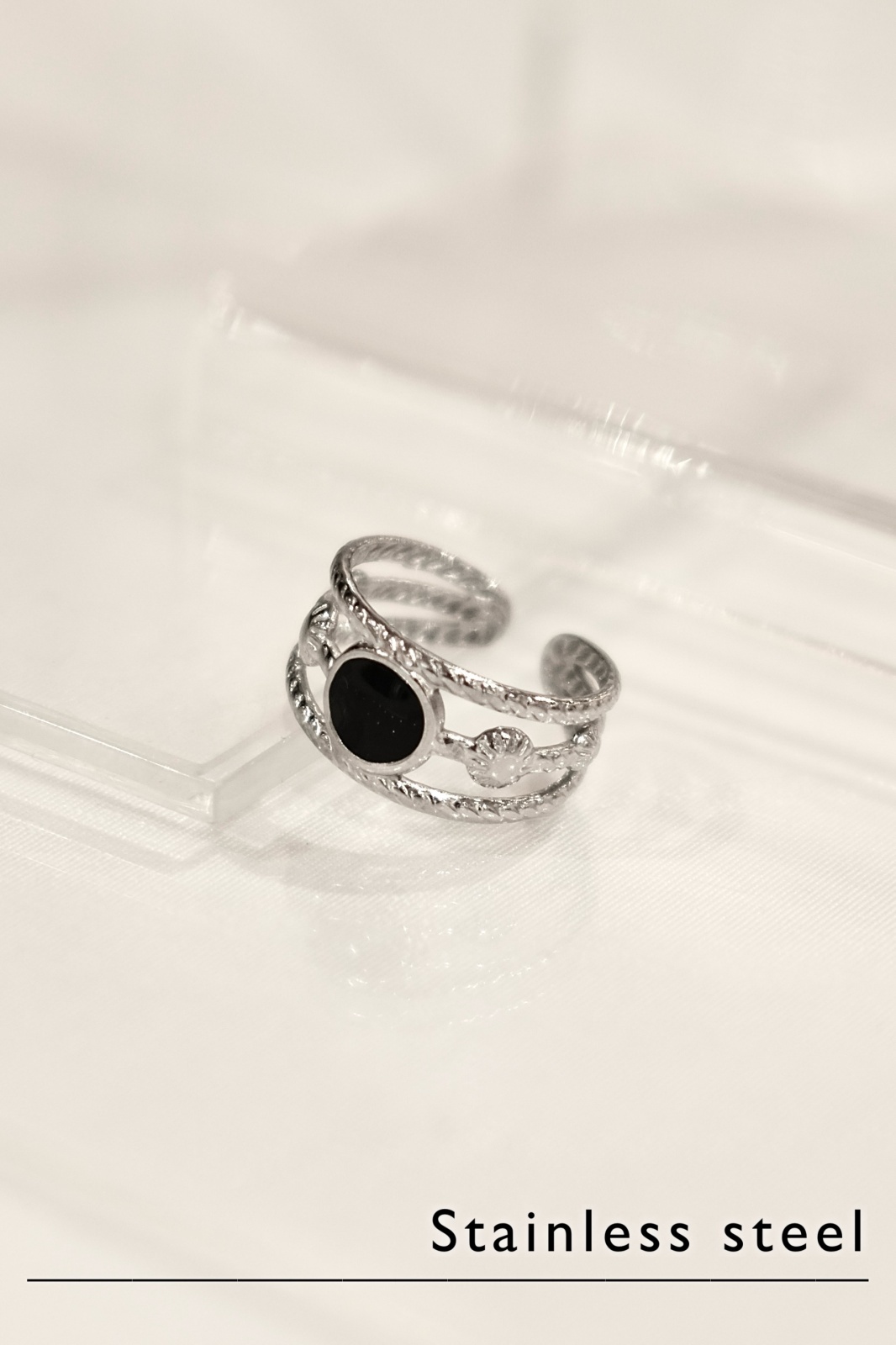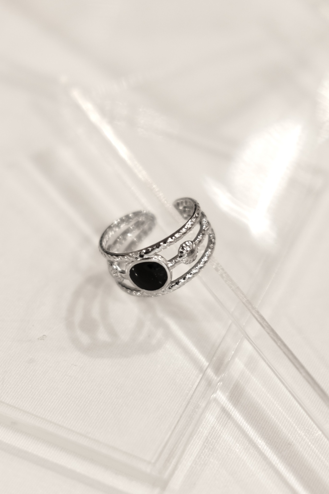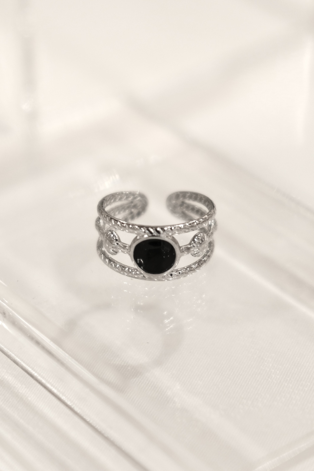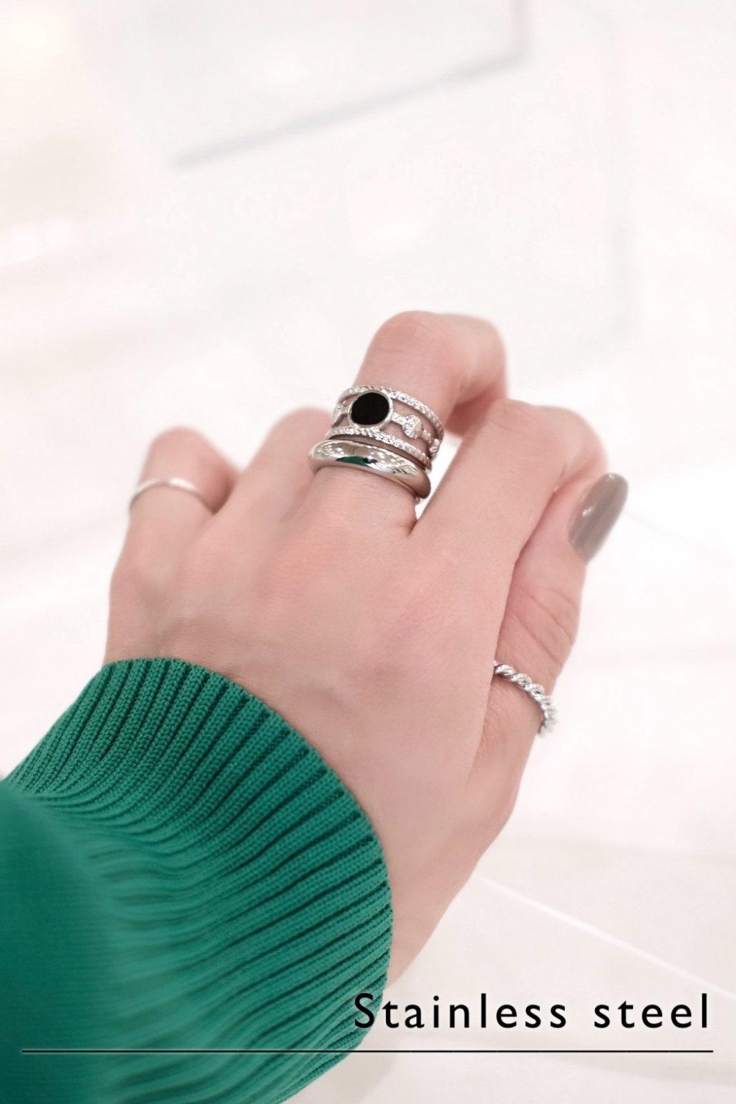 肌に映えるブラックのフロントサークルが魅力的なリング。