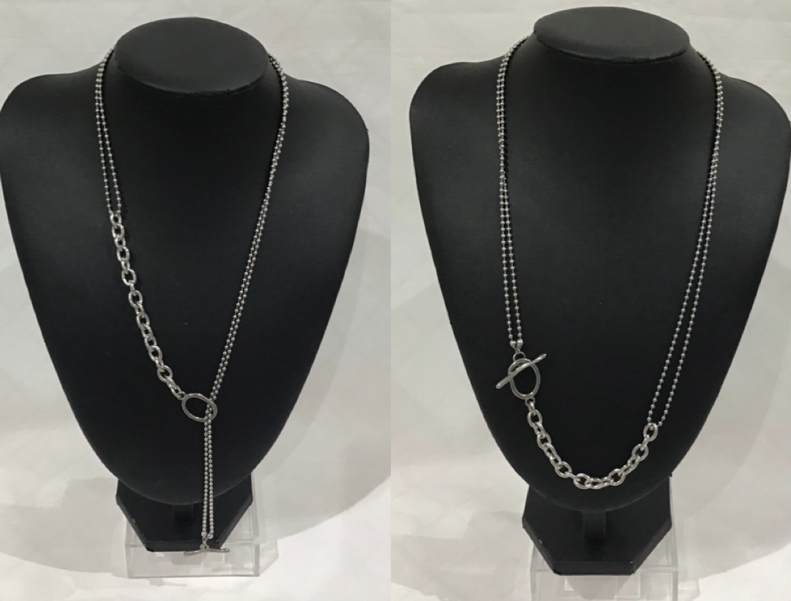ステンレス 6mm幅 キヘイチェーン& 2mm幅 Wボールチェーンマンテルネックレス 62cm /シルバー [NC691-S-62]