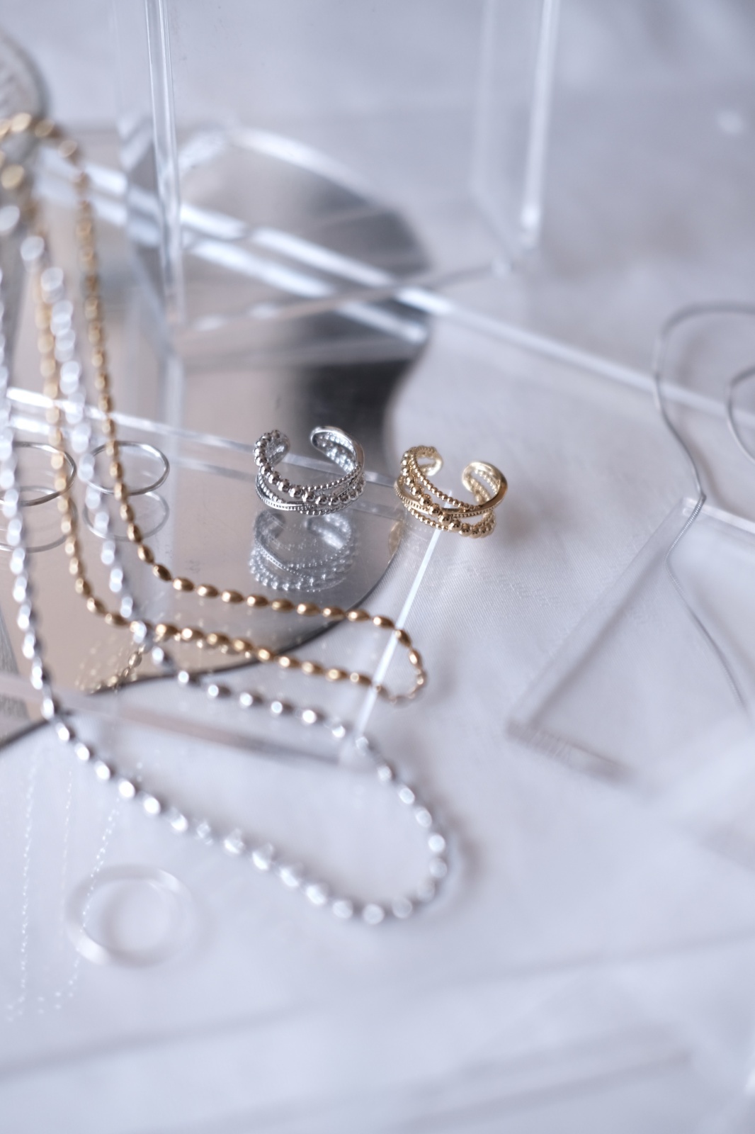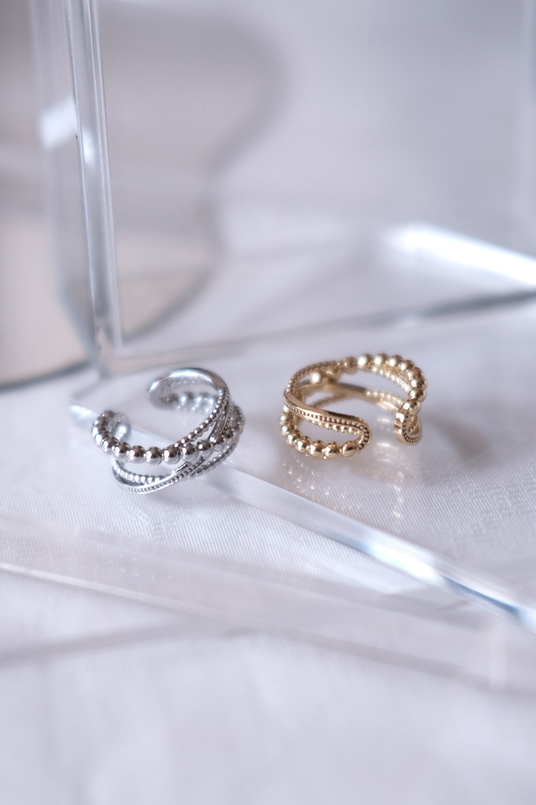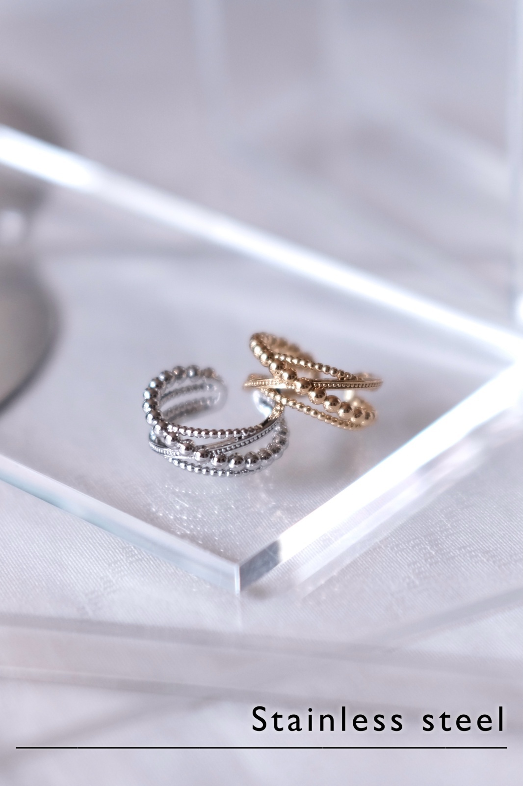ステンレス ランダムドッドクロスラインリング [R1501]