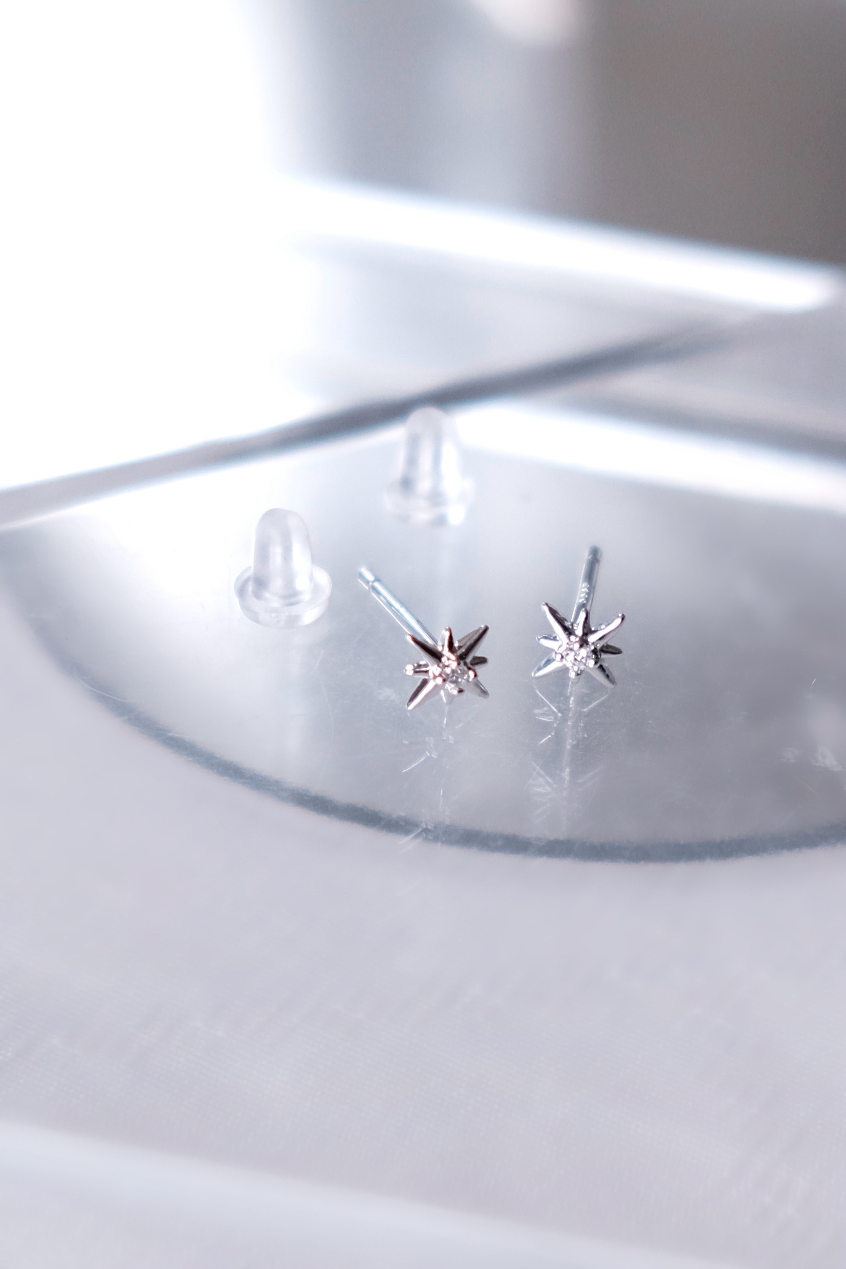 中央のジルコニアがキラッと輝くスタッドピアス。