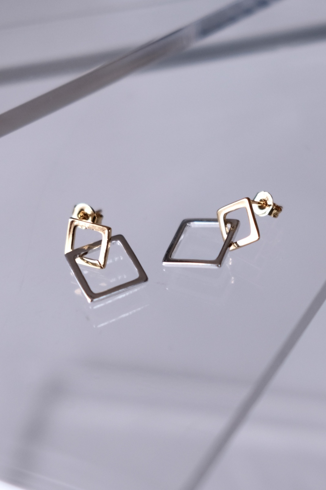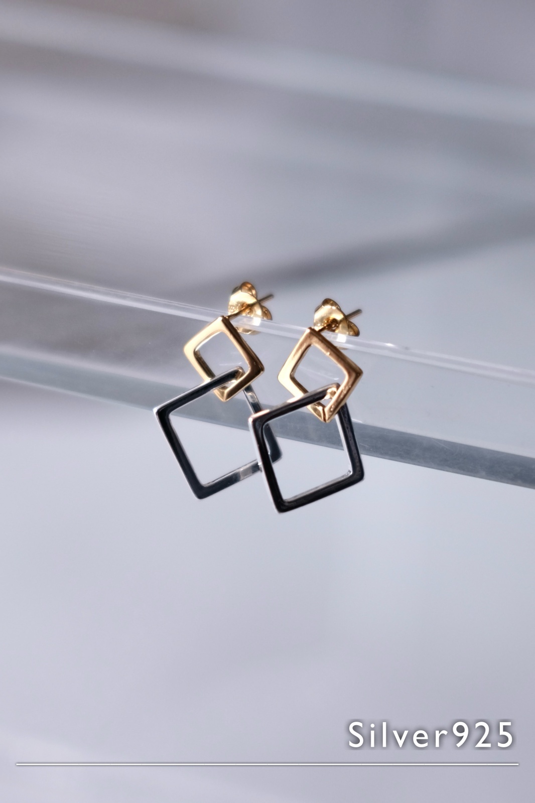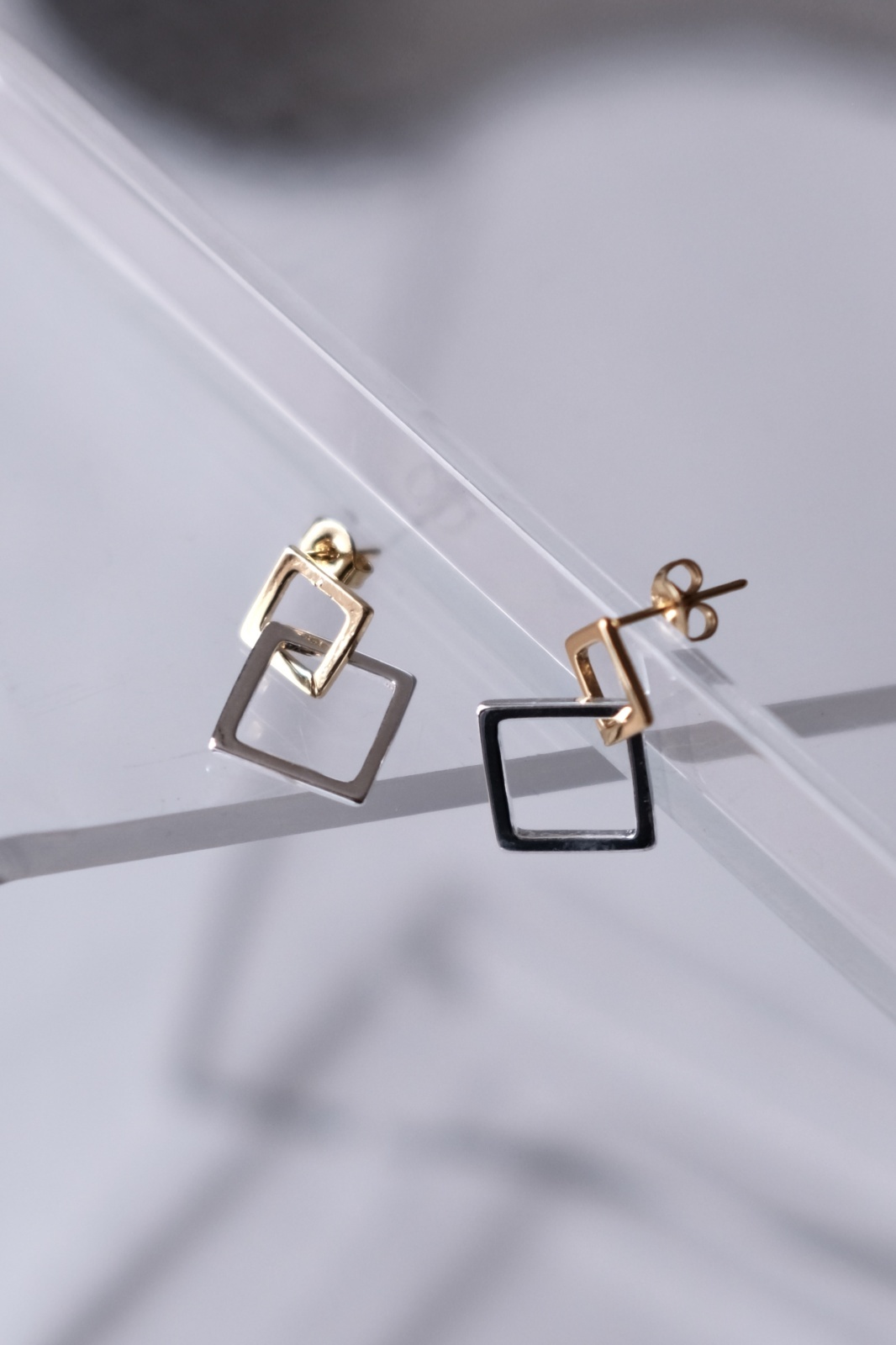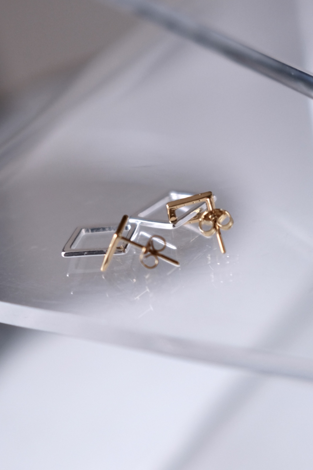 ゆらゆら軽やかなスクエアモチーフスタッドピアス。